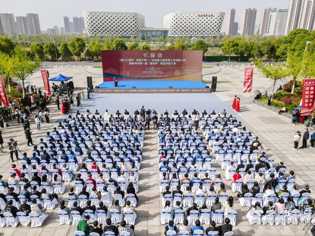 荆楚网(湖北日报网)讯(通讯员钱莉)4月7日,湖北省第三届民间工艺技能大赛暨荆州市第一届“郢匠杯”职业技能大赛开幕式在荆州体育中心隆重举行。活动以“双赛合一”“赛展一体”的形式,将省赛、市赛和荆州市技能人才队伍建设成果展示相结合,共设有8个民间工艺项目及7类16个现代产业项目,参赛选手们将开展为期两天的“技能大比拼”,尽情展示竞技风采,弘扬工匠精神。