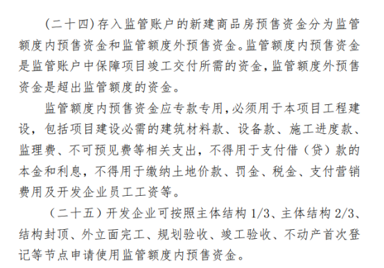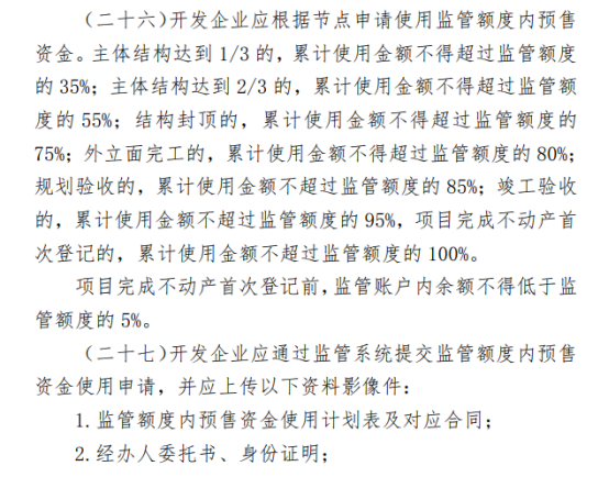 监管额度外预售资金支付