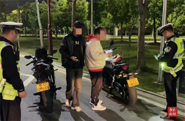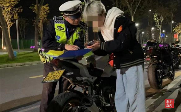 4月7日23时,民辅警巡逻至武王大道时,发现在此聚集的摩托车辆,通过现场盘查,发现并收缴非法加装设备,并逐台对现场车辆信息进行登记。同时,民警现场对驾驶人开展交通安全警示教育,引导他们安全文明规范行驶,杜绝“飙车炸街”、非法改装车辆上路行驶等违法行为。