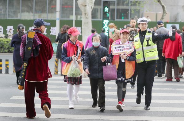 4月8日,东宝区红旗小学少先队员在交警的带领下走上街头,开展“小手拉大手 安全文明行”交通劝导志愿服务活动。今年以来,市公安局交警支队把“小手拉大手”道路交通安全宣传覆盖到每一所学校,引导鼓励中小学生争当道路交通安全义务宣传员,最大限度地扩大交通安全宣传的普及面和影响力,带动提升全社会安全文明出行意识,共同构建文明、平安、和谐的道路交通出行环境。(记者 三毛 通讯员 谈媛媛 摄)