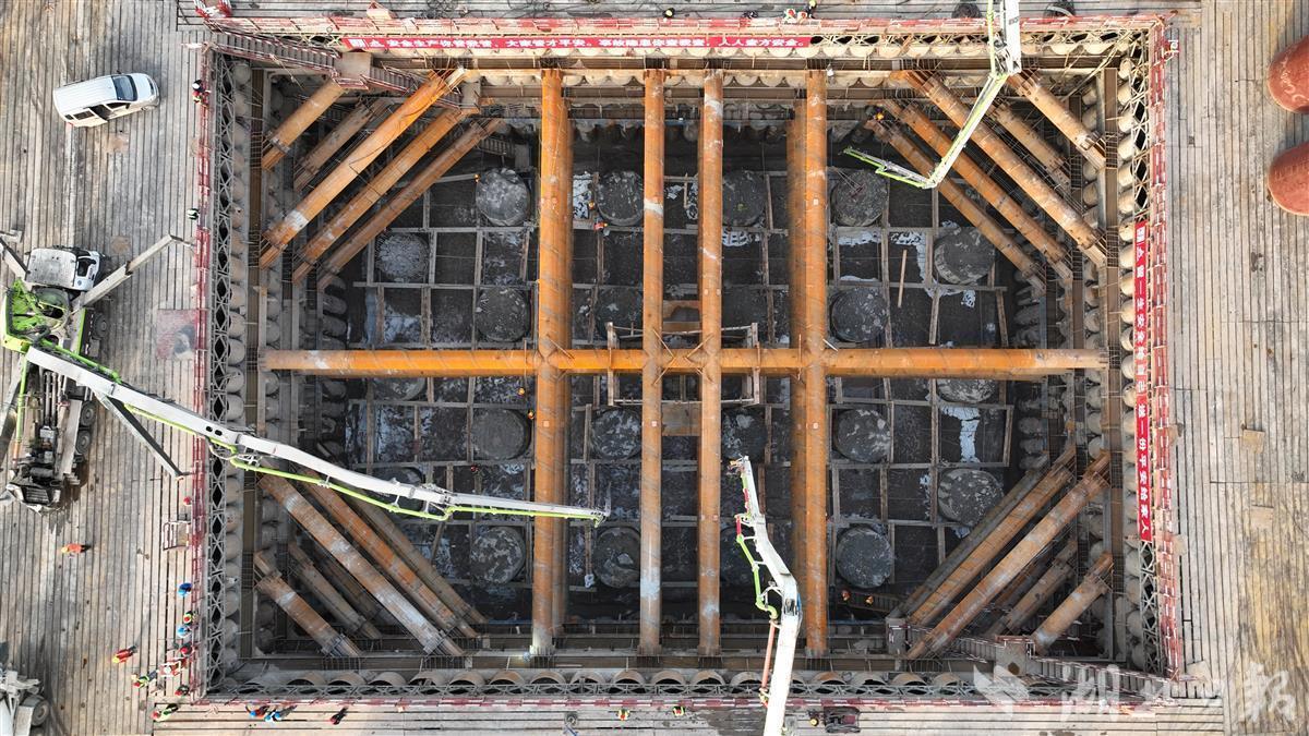 湖北日报讯(记者戴辉、通讯员秦克明)4月8日,经过10余个小时连续作业,由湖北交投投资、湖南路桥承建的观音寺长江大桥主桥公安侧下游主墩承台基坑封底混凝土顺利浇筑完成,本次浇筑方量约1800立方米。至此,观音寺长江大桥主桥南北两岸4个主墩承台基坑封底混凝土施工全部完成,标志着观音寺长江大桥主桥全面进入承台施工阶段,为主墩承台出水和后续施工奠定坚实基础。