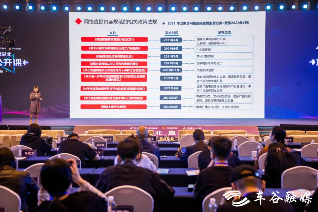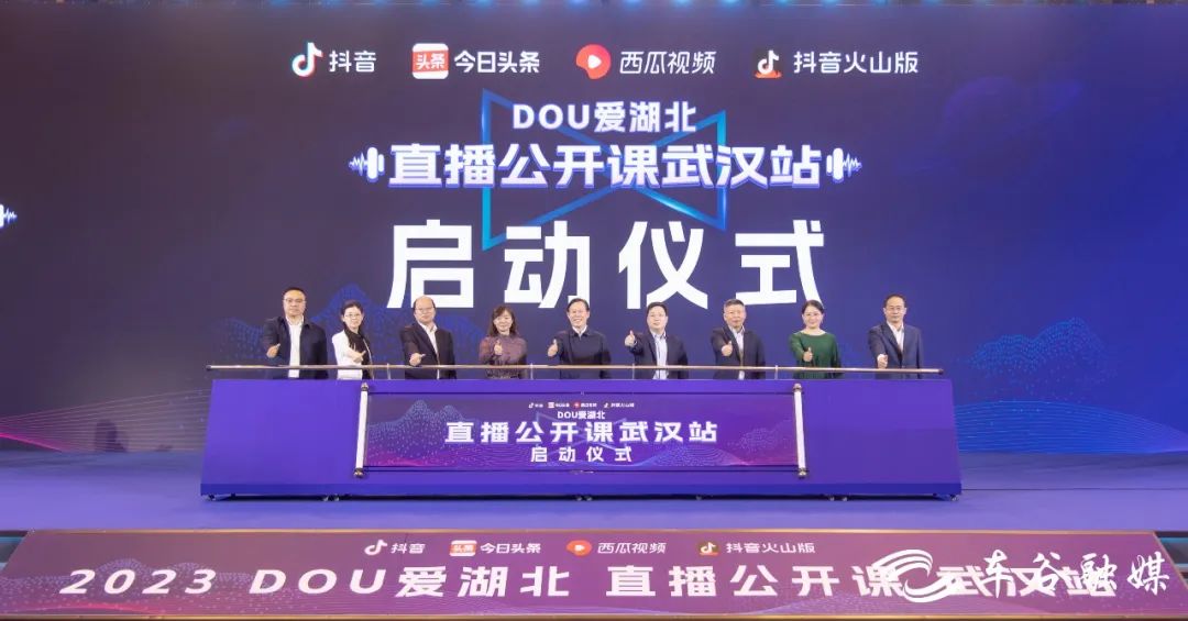 4月11日“DOU爱湖北·直播公开课”武汉站活动在武汉经开区启动来自中国演出行业协会、中国传媒大学和华中师范大学知名专家学者以及抖音平台资深运营管理者、平台优秀头部达人,对近百位抖音优秀主播进行技能培训、直播行业规则与内容升级培训,提升主播打造优质直播内容的能力。