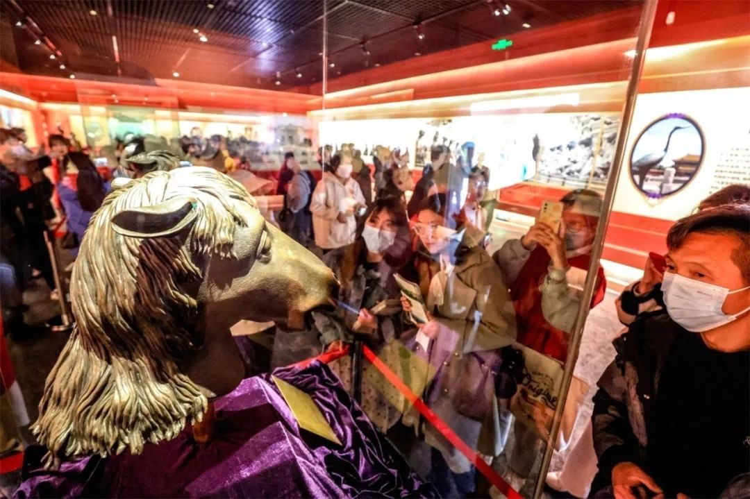 荆州博物馆“盛世回归·圆明园兽首特展”上,圆明园十二生肖兽首中的牛首、虎首、马首、猴首、猪首五尊国宝首次在湖北同台展出。这场馆际的交流和文化的碰撞,引得周边地区游客纷纷前来驻足、游玩。
