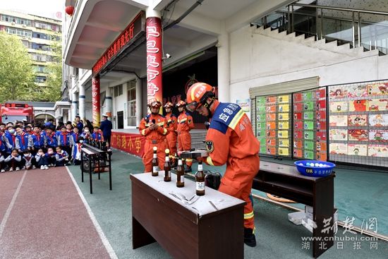 原来,当天黄石港区消防救援大队在广场路小学开展了一场别开生面的消防安全“进校园”疏散演练活动。