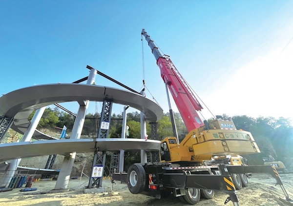 本报讯 日前,备受市民关注的十堰主城区健康步道项目迎来新进展,位于紫霄大道加油站对面的螺旋塔开始吊装钢箱梁,计划本月底前完成16联钢箱梁的吊装。