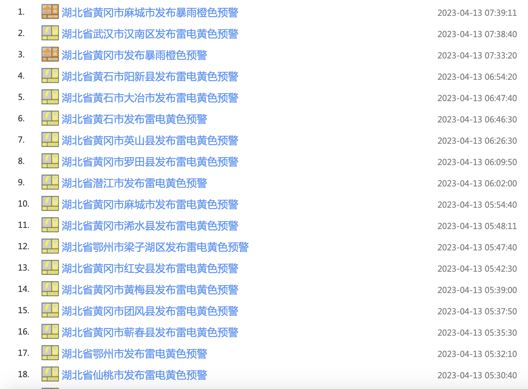 今晨,湖北武汉、黄冈、鄂州等多地发布暴雨橙色预警、雷电黄色预警,提醒大家,出行请注意!