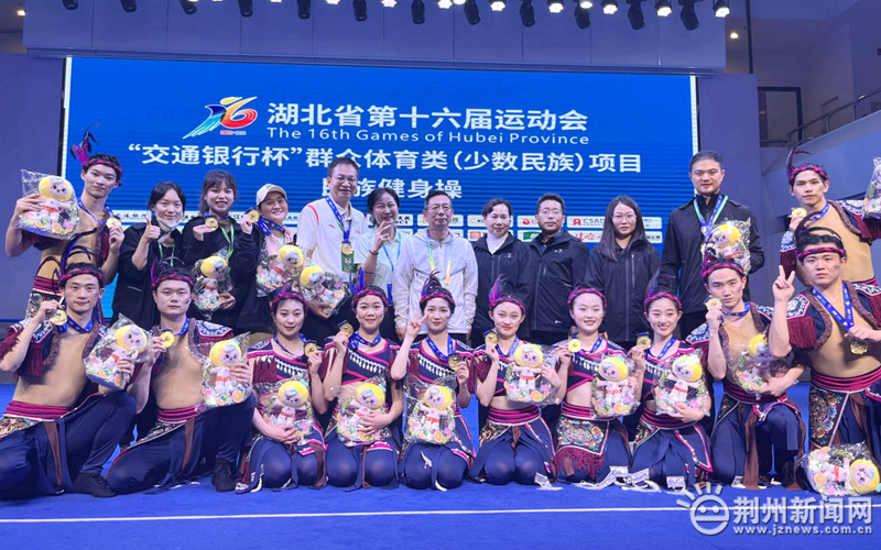 荆州新闻网消息(记者 肖雨 通讯员 高小庆)4月13日,湖北省第十六届运动会群众体育类(少数民族)民族健身操项目在三峡大学激情上演,荆州代表队获得“肉连响”民族健身操金牌。