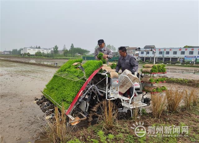插秧、转弯、掉头,大田里,无人自动插秧机正在精准作业,一排排嫩绿的秧苗被整齐划一地播种在水田之中。在农场另一边,安装了“北斗”智能终端的旋耕机,也在根据设定的路线翻土、整地。