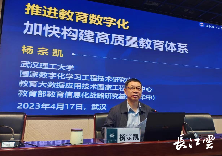 4月17日上午,武汉理工大学校长杨宗凯教授来到华中师范大学管理教育综合楼,为79期中南班和91期省直班的干训学员作《推进教育数字化,加快构建高质量教育体系》专题报告。