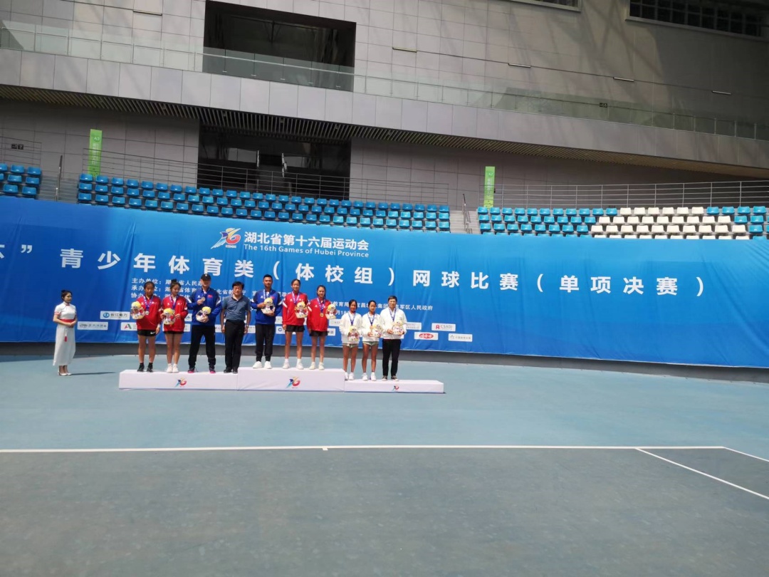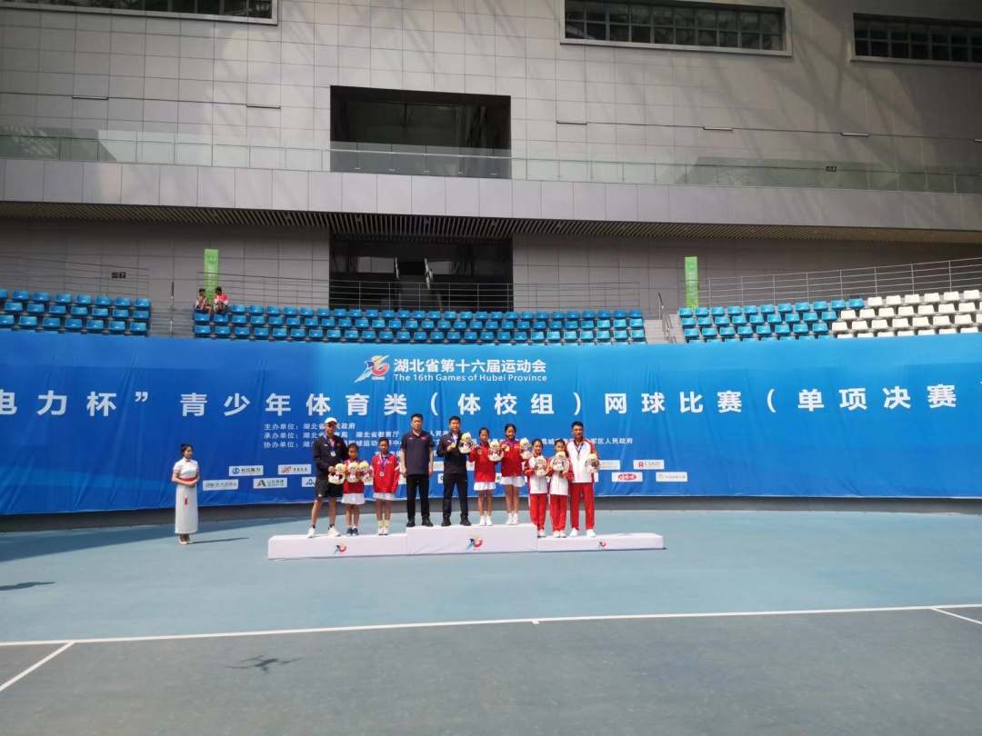 京山网校学生陈芷彤、吴汝茜在青少年网球U14组女子双打比赛中获得金牌,丁一一、李奥一获得银牌。