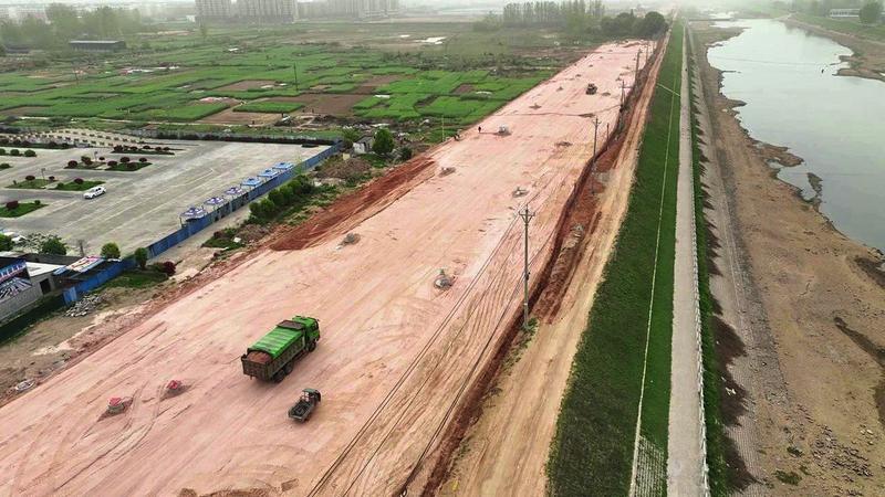图①②随县烈山湖东路建设现场 (随州日报见习记者刘馨怡、通讯员陈首龙、 杜秋阳摄)