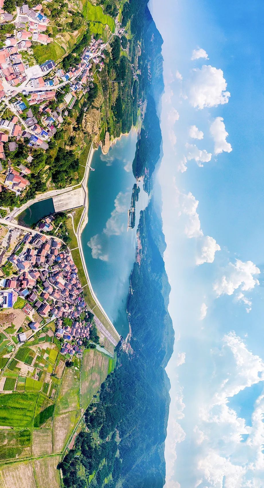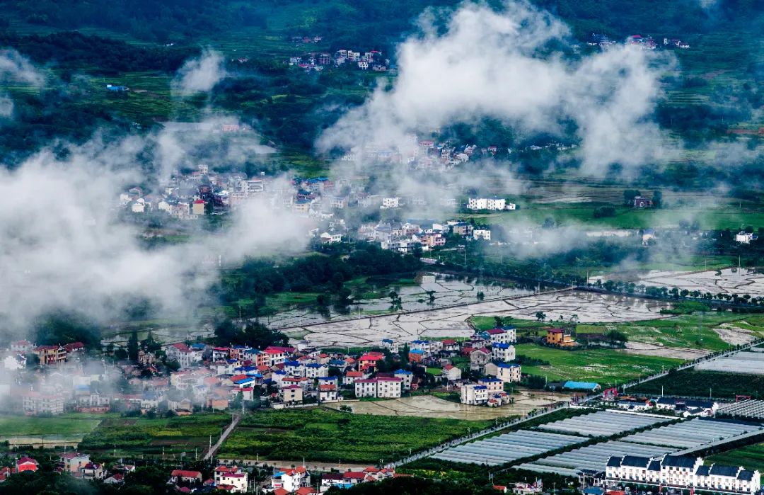 青山、湖泊、云海、麦田、池塘