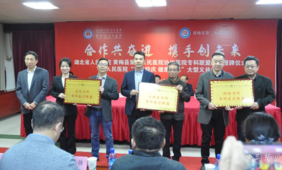 省人民医院呼吸与危重症医学科、骨外科、急诊科、重症医学科、康复医学科、胃肠外科、神经内科、心血管内科、消化内科、内分泌科、泌尿外科、血液透析科、护理、肝胆外科、乳腺甲状腺外科、病理科等科室与黄梅县第二人民医院建立16个专科联盟,助力黄梅县第二人民医院大力实施“名医、名科、名院”发展战略,打造“黄梅县区域医疗次中心”。
