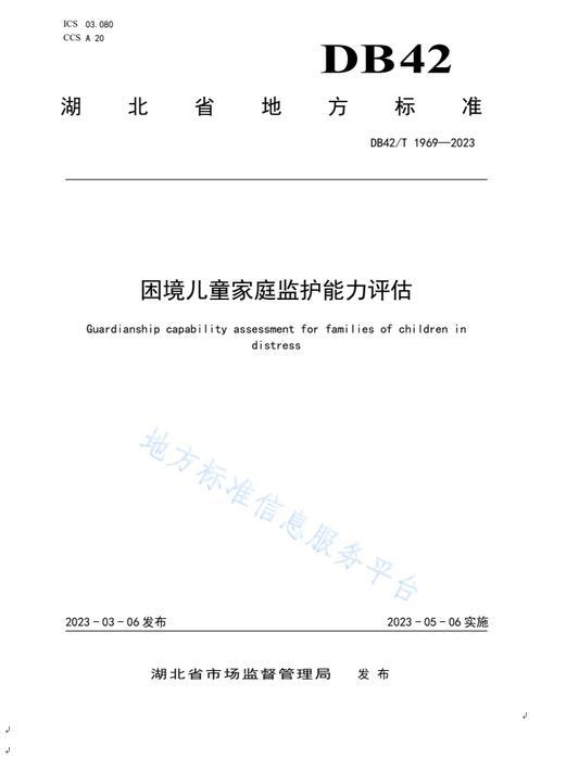 《困境儿童家庭监护能力评估》(DB42/T1969-2023)是针对困境儿童家庭监护能力问题而制定的,通过对家庭环境、家庭成员和监护能力等方面进行评估,旨在提高家庭的监护能力,保障困境儿童的健康成长和发展。《未成年人保护工作站服务规范》(DB42/T2000-2023)是为了规范未成年人保护工作站的服务内容和服务流程,提高服务质量,保障未成年人的合法权益而制定。