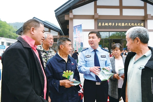 4月20日,房县公安局姚坪派出所民警抓住春耕生产时机,来到化口村向群众宣传防电信网络诈骗知识,斩断以购买种子、化肥、农机具提供贷款为名,伸向农民的“黑手”。通讯员魏世银摄