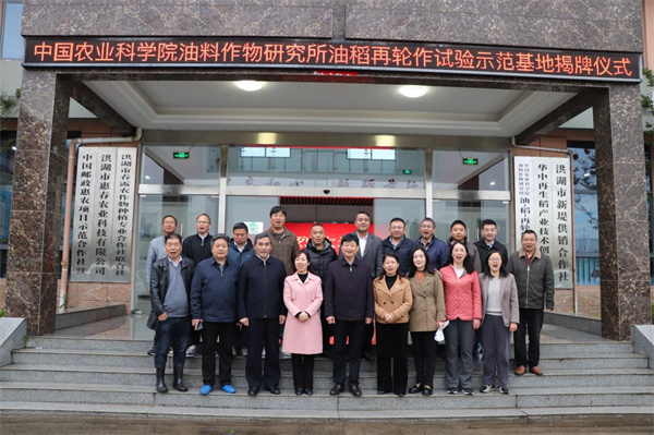 4月23日,中国农业科学院油料作物研究所“稻-再-油”轮作模式示范基地揭牌成立,标志着湖北省最大的“稻-再-油”技术模式试验示范基地落户洪湖。