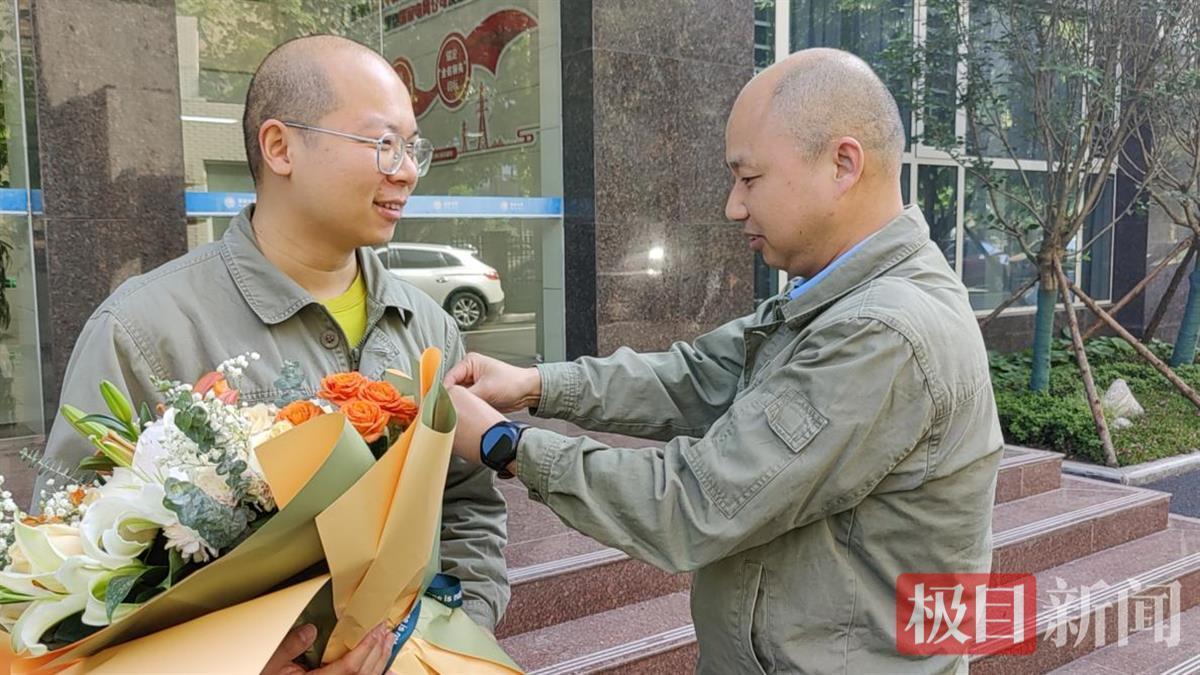 公司领导为即将出征的胡頔送上鲜花 通讯员供图