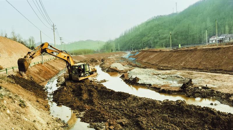 随县严格落实河长制,汛期前组织对中小河流进行综合治理,通过加固硬化河堤、挖掘疏浚河道、改造排水管网等,不断完善水利建设,消除洪水隐患,提升防汛抗旱能力。图为三里岗镇刘店村正在进行河堤加固作业。 (随州日报全媒记者 李文军摄)