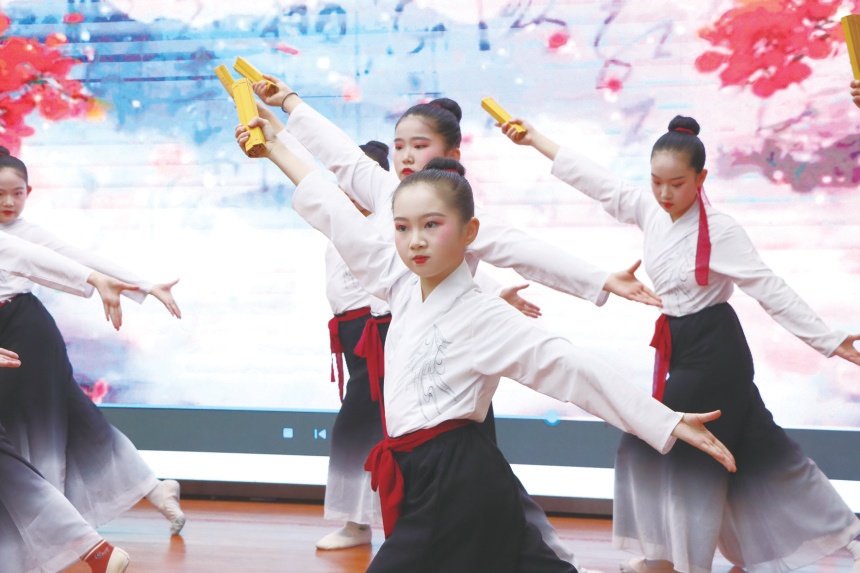 主题活动,赋能学生发展。4月17日,茅箭区实验学校在清晨的升国旗仪式上为全校师生分享了“凿壁借光”“囊萤夜读”等读书故事,提醒师生改变碎片化的阅读方式,多读书,读好书。此外,该校还采用大单元教学设计理念,深度挖掘诗词文化内涵,创新形式开展了古诗词诵读活动,让学生在诵读中感受诗词的韵律美、人文美和哲学美,从小树立文化自信。