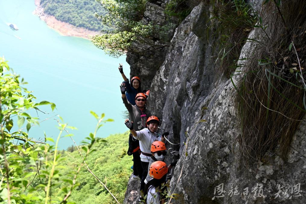 在飞拉达景区,网红主播现场直播,摄影师拍摄短视频,与观众、游客互动。“早就听说建始飞拉达紧邻清江画廊,环境优美,是户外运动爱好者体验登临绝壁的快乐打卡地,今天一见,果然名不虚传。”南京游客王先生兴奋不已。