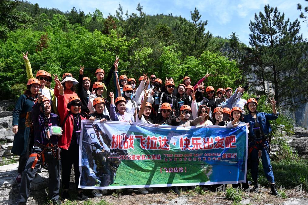 4月26日,建始县工商联牵手20余位网红主播、摄影师齐聚鸡公岭飞拉达户外攀岩基地,开展“挑战飞拉达 快乐出发吧”攀岩体验活动。