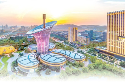 湖北武汉未来科技城,128米高的“马蹄莲”形状的大楼,是光谷地标。