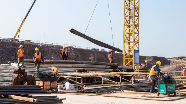 抢抓晴好天气,全力推进项目建设,4月25日,荆门西站配套基础设施项目施工现场,2000多名建设者在各作业面上施工正酣。