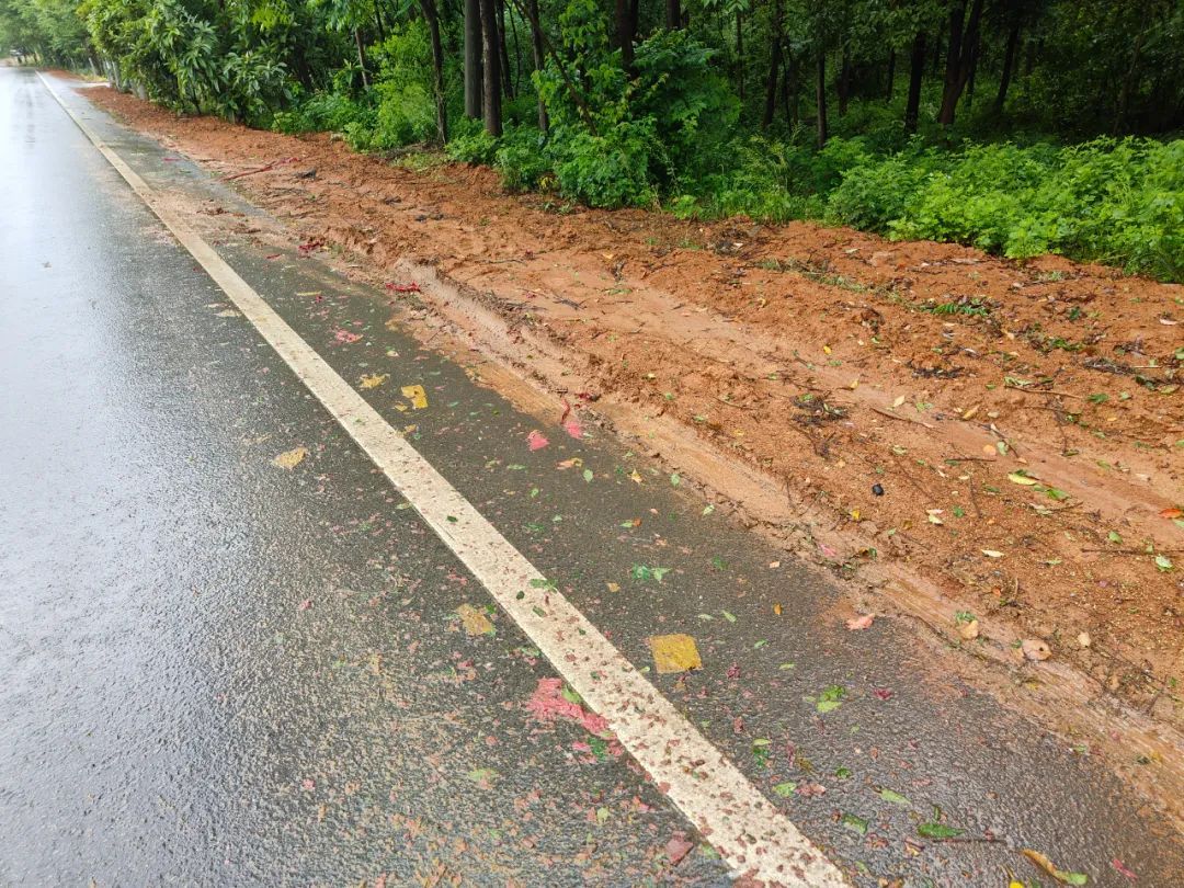 事发地点,雨后的路边还留有深深的车轮印。