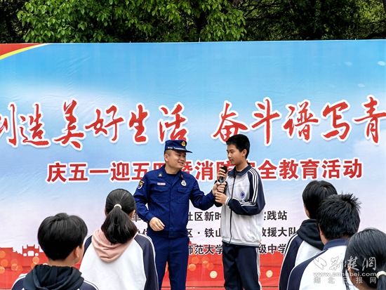 荆楚网(湖北日报网)讯(通讯员吴甘迪)“五一”假期临近,4月28日,黄石开发区·铁山区消防救援大队联合四棵社区开展中小学生宣传教育活动,为学生假期安全“护航”。