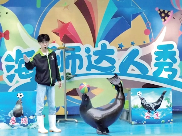 今年23岁的何龙是十堰人,他从小就很喜欢动物。2016年,他得知动物园在招聘海狮饲养员,打算试一试。没想到第一次接触海狮,他就得心应手。当时还在园内的海狮州州十分听他的话。相处时间长了,何龙与州州配合得越来越默契,州州也成为市人民公园动物园最受欢迎的动物之一。近年来,州州年龄越来越大,不得不“退休”,动物园引进了安迪等其它几只海狮,何龙则一直坚守在岗位上。