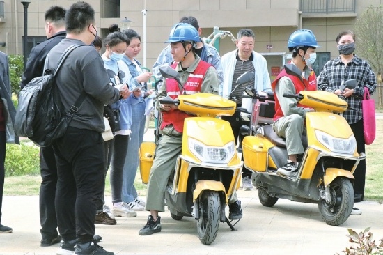 日前,荆州区供电公司荆东供电服务站“移动营业厅”工作人员骑着“小黄车”,来到即将交付使用的东升怡景小区,现场为准业主办理业务。