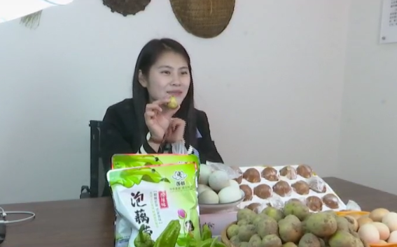 虾商云集网络科技有限公司主播袁立美说:“我们的直播每天都有,主打黄豆、皮蛋、黄瓜、辣椒……”