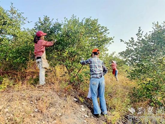 去年10月份,金贞红承包的1000多亩油茶收获了,村里在家的300余村民纷纷上山采摘,该村七组68岁的郑先英采摘2个月收入就达9836元,六组64岁的肖水平收入8760余元。周边邓塆村,邹集村还有上新集镇的几个村的村民都上山采摘油茶籽,收入每天均在300元以上。