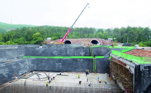 5月5日,石莲线下穿罗汉山隧道敞口段通道正在紧张施工当中。该通道为原石莲线改道工程,预计通道主体工程6月底完工。(记者 郑波 通讯员 廖廷文 摄)