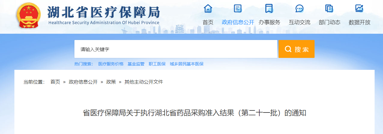 近日,湖北省医疗保障局发布关于执行湖北省药品采购准入结果(第二十一批)的通知,全省所有公立医疗机构自5月6日起执行。
