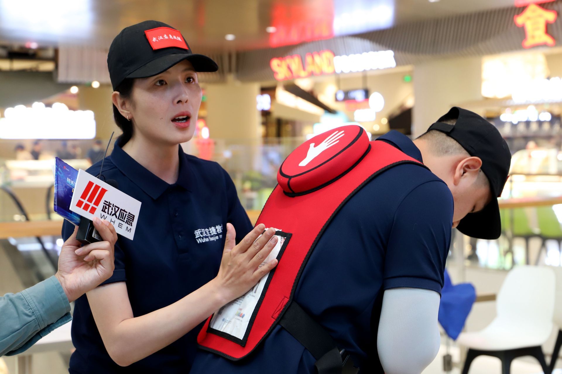 5月5日,武汉市第四届“镜头下的安全”活动走进武汉天地壹方南馆,开展了一场网络直播,29万网友跟随直播镜头一起捕捉了商场中的应急安全小细节,并纷纷拿起手机,记录下身边的安全瞬间。直播中,武汉理工大学副教授、武汉市应急管理专家库成员黄明沉浸式讲解了火灾逃生、电梯遇险自救、防坠防摔等安全知识和技能,武汉市江岸区宝捷救援队也惊喜降临,现场演示了海姆立克急救法、自动体外除颤仪(简称“AED”)等的使用方法。