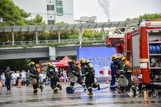 荆楚网(湖北日报网)讯(通讯员卢雅婕)警报拉响、车轮滚滚、应急力量闻令出战;逃生疏散、火场搜救、高喷射水......5月6日上午,黄石市2023年度全国防灾减灾宣传周启动仪式暨城市消防应急疏散演练,在黄石港区摩尔城拉开帷幕。