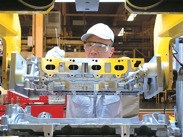 昨日,位于张湾区的东风轻型发动机有限公司装配线上,工人正在生产轻型发动机。该公司专注核心技术研发,推进转型升级,生产的 M9T轻型柴油发动机排放水平达到欧六标准,是目前世界上2L柴油发动机平台最先进的发动机产品之一。今年以来,该公司轻型发动机产量达1.4万台。