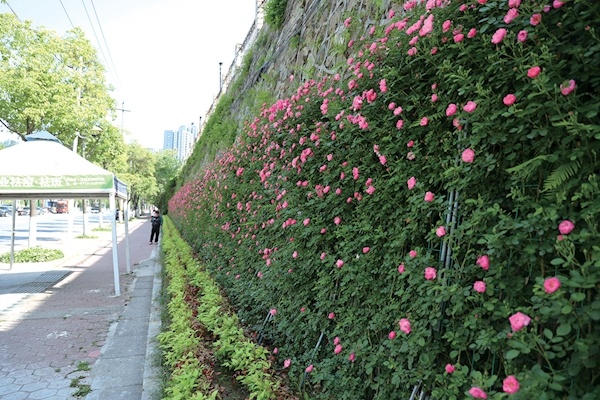 十堰大道全段共设置3处花墙,全长约350米,共种植月季花3000余株,预计下周末全部完工。