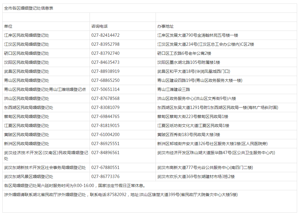 可点击查看大图,可联系武汉各区婚姻登记处↓