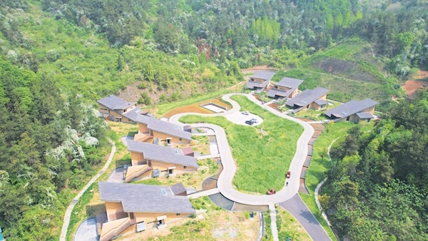 日前,记者拍摄的武当山特区太极湖办事处龙王沟村“师傅的山”精品民宿。龙王沟村背倚武当山、面朝太极湖,旅游资源十分丰富。近年来,该村大力发展文旅产业,引进“师傅的山”精品民宿、武当新京武文武学校等项目,成功创建市级乡村振兴示范村。记者韩玉砚摄