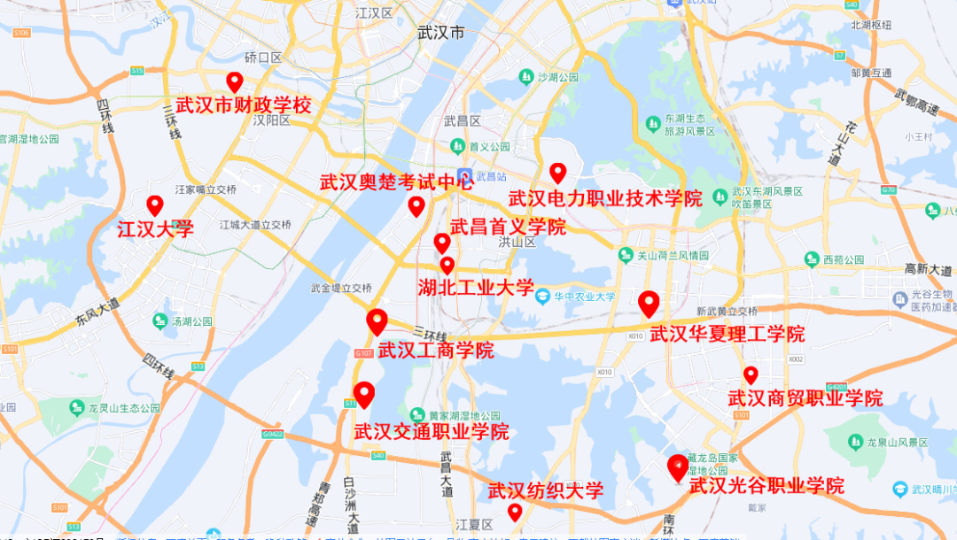 2023年武汉考区全国会计专业技术初高级资格考试主要涉及汉阳、洪山、开发区、东新、江夏等辖区。
