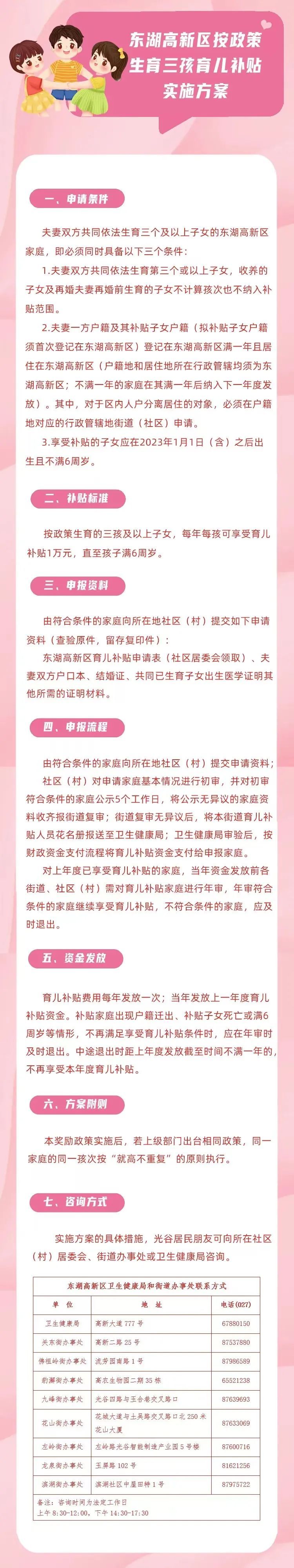 在第112个“5·12”国际护士节之际,东湖高新区发布《按政策生育三孩发放育儿补贴实施方案》,对2023年1月1日后满足相关条件生育三孩及以上子女的家庭,每年每孩可享受育儿补贴1万元,最长可享受至6周岁。