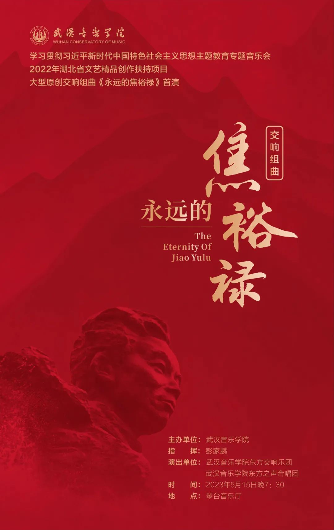 荆楚网(湖北日报网)讯 5月15日19时30分,由武汉音乐学院创作完成的大型原创交响组曲《永远的焦裕禄》将在武汉琴台音乐厅首演。