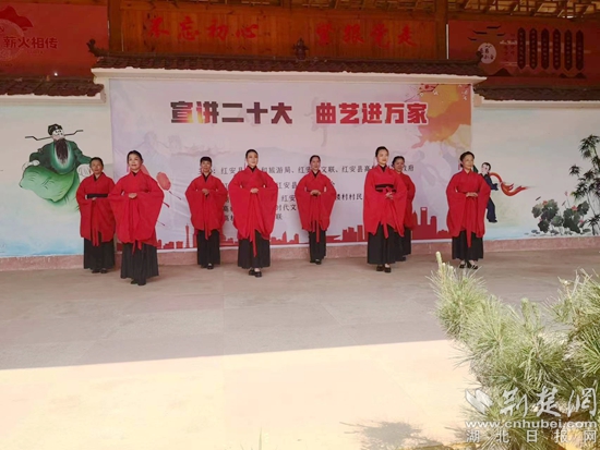 荆楚网(湖北日报网)讯(通讯员毛红平)“走啊,去文化礼堂看戏哟!红安县曲艺家协会主席邓永松,自编自唱湖北大鼓宣讲党的二十大精神真好看哟。”5月14日一大早,红安县高桥镇高楼村党支部书记吴胜祥就在朋友圈里向村民发出了通知。