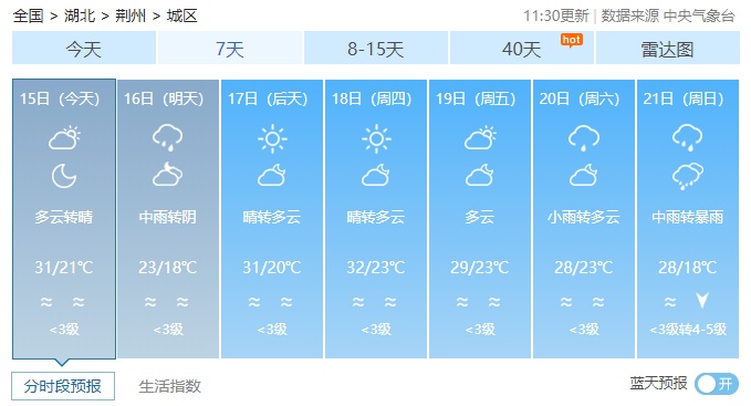 今天(5月15日)下午,荆州市气象台发布了一则气象服务快报。