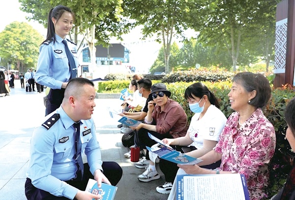 5月15日是第14个全国公安机关打击和防范经济犯罪宣传日。当日,我市在六堰人民广场启动“与民同心·为您守护”全市防范和打击非法集资志愿宣传活动暨“5·15”公安机关打击和防范经济犯罪宣传活动。现场设置宣传展板、发放宣传资料,揭露常见经济犯罪手法,增强市民防范意识,市民纷纷在签名墙上签名承诺远离非法集资。图/记者 潘世新 杨建波
