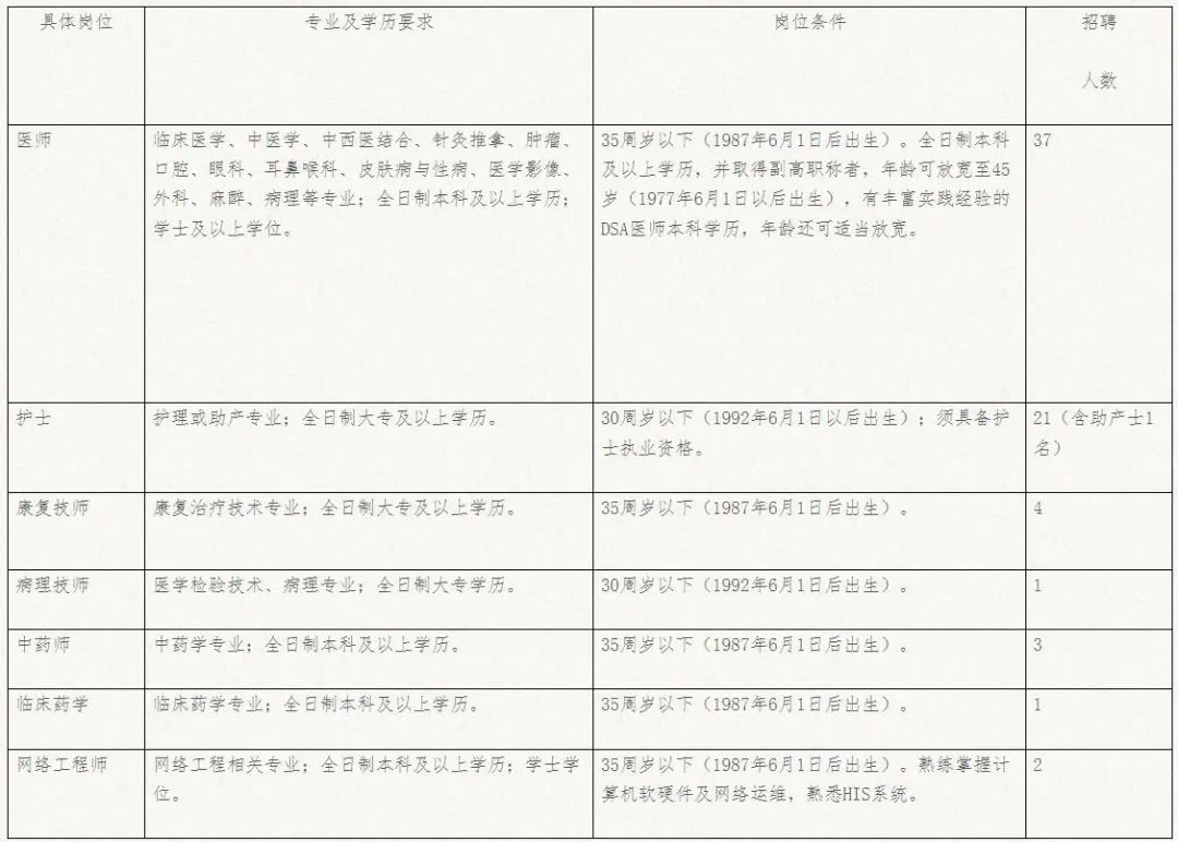 助理护士10人、静配护士(金银湖、西院) 5人、泌尿外科医疗技术岗1人。
