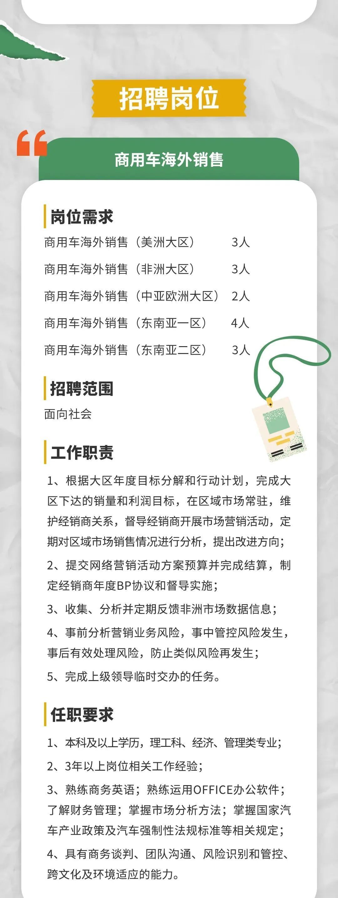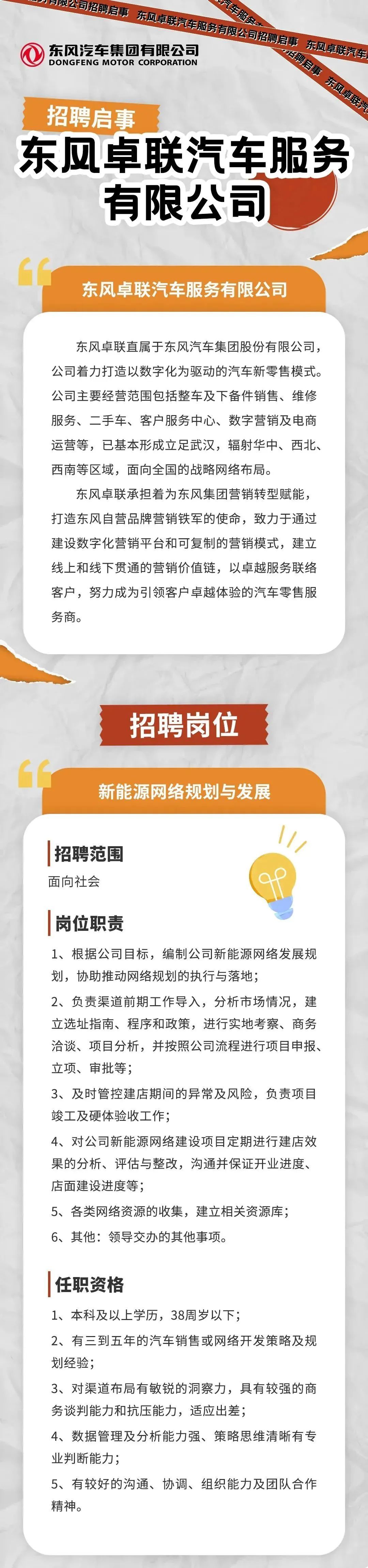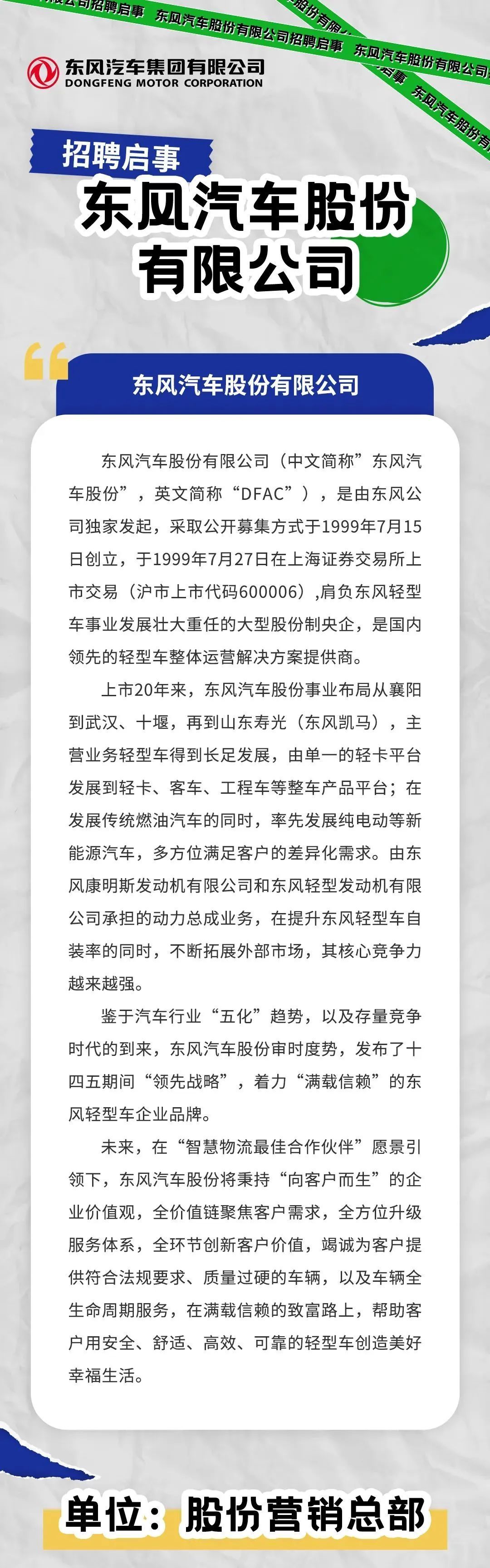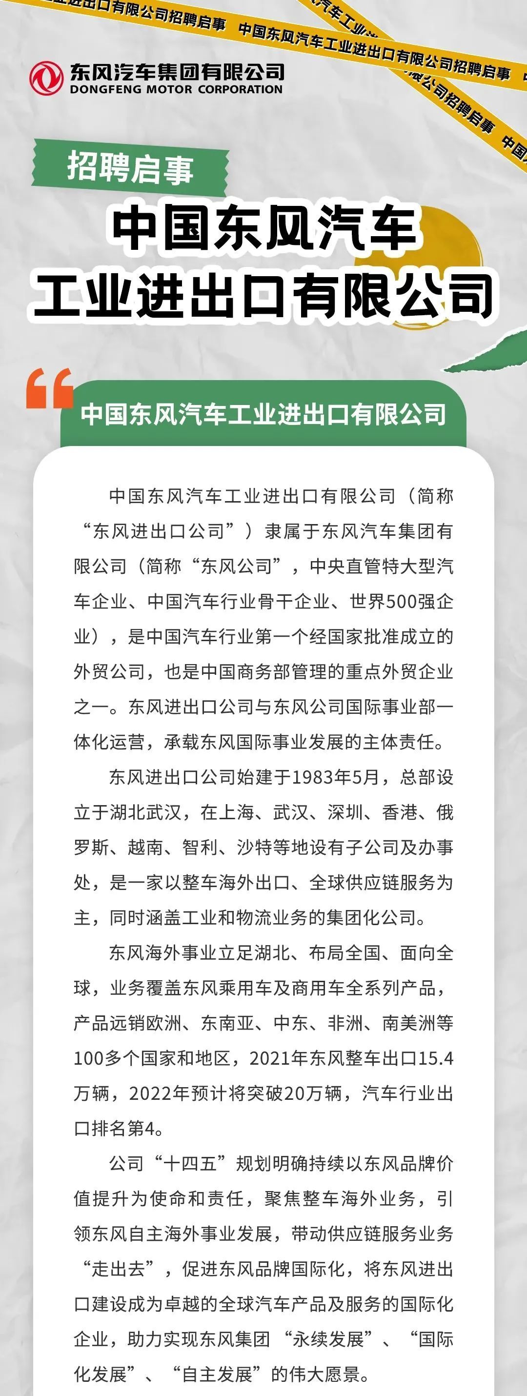 东风汽车下属公司招聘若干人
