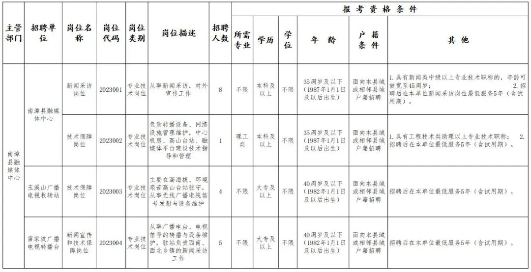 襄阳市南漳县融媒体中心招聘18人
